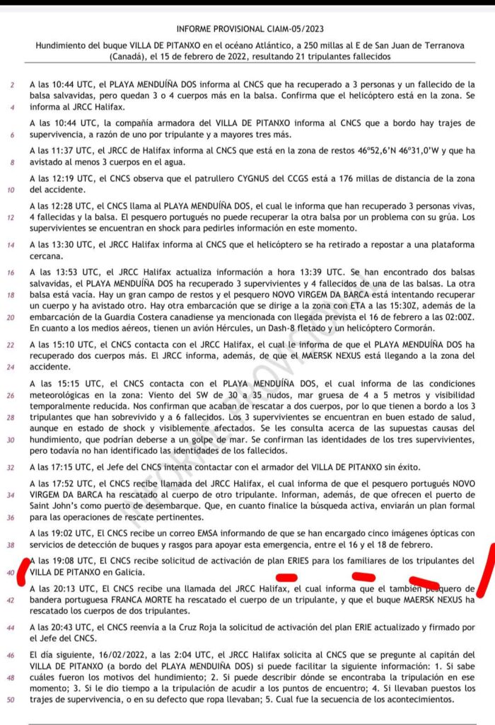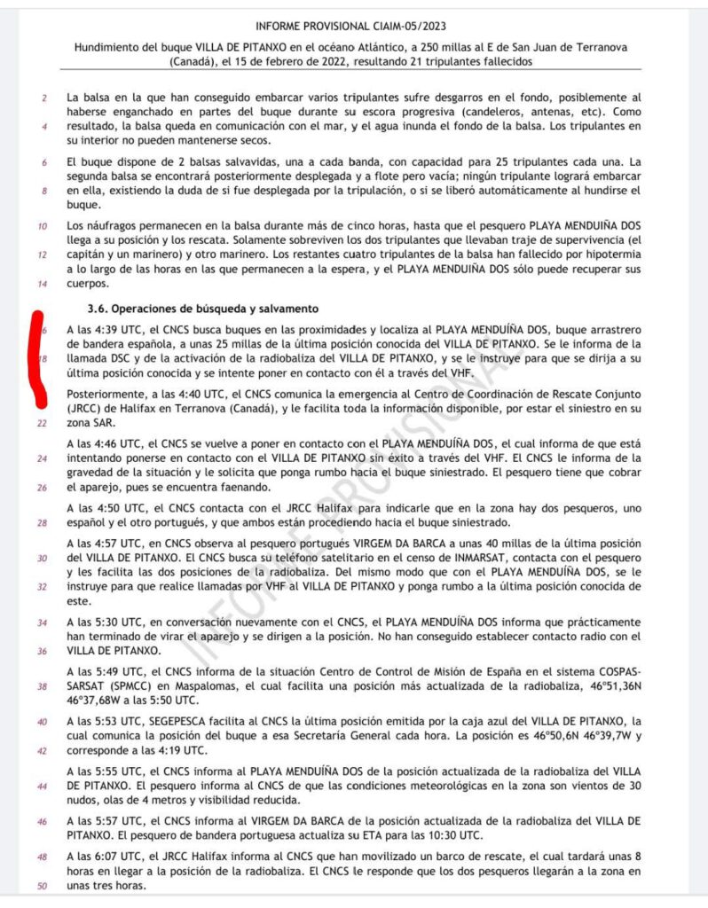 El Grupo de Expertos No Gubernamentales del Sistema Mundial de Socorro, insto, al Gobierno de España, a que sin demora y tomando como referencia los datos aportados aplicara las preceptivas medidas correctoras para la protección de vidas y bienes en aguas españolas.