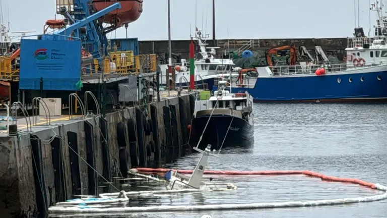 Trabajadores de Portos de Galicia estuvieron este domingo en la zona del hundimiento, si bien por el momento el barco no se ha reflotado.