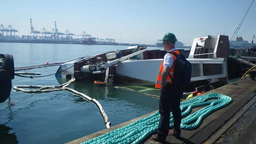 El impacto se produjo a las 20 horas 04 minutos y 50 segundos, según recoge la cámara del barco, y el arrastrero pelágico lo mantiene incrustado en su proa hasta las 20 horas 06 minutos 15 segundos. Durante ese tiempo, la tripulación del Right Whale sube a cubierta alarmado mientras los marineros del Tafra 3 situados en popa tratan de ponerse a salvo encaramándose a las redes.