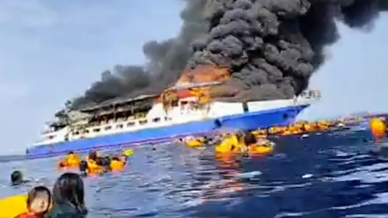 Decenas de pasajeros del ferry incendiado esperan en el agua a ser rescatados