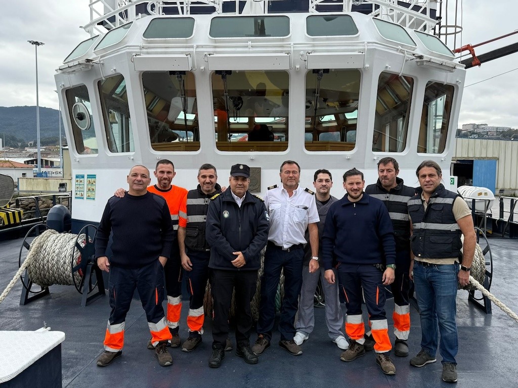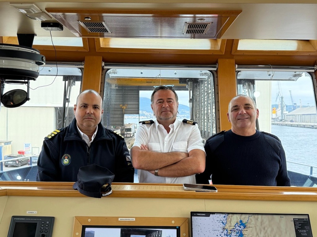 A pie de escala nos recibe el capitán Pedro Enrique Siaba Espasandín, que es un veterano del Servizo da Gardacostas, muy experimentado en este tipo de unidades y perteneciente a la plantilla de Remolcanosa, una de las empresas señaras del remolque en España. El encuentro con el resto de la tripulación nos hace sentir como si nos conociéramos de toda la vida y también nos acompaña Amador Castro Pereira, jefe del Servicio de Búsqueda, Salvamento Marítimo y Lucha contra la Contaminación Marina.