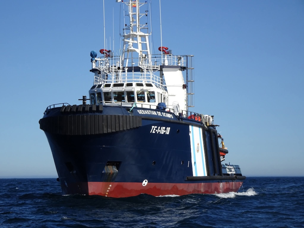 Vista de proa, por la amura de babor, del remolcador de salvamento y apoyo «Sebastián de Ocampo»