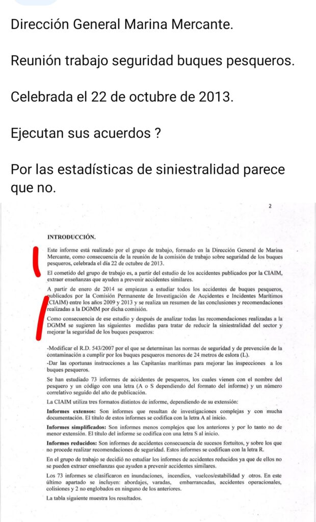 • «La seguridad laboral de los trabajadores del sector marítimo pesquero se rige por un amplio espectro de normas, que incluye toda la correspondiente a la seguridad de la navegación (seguridad marítima) y la correspondiente a la seguridad y salud del trabajo a bordo.»