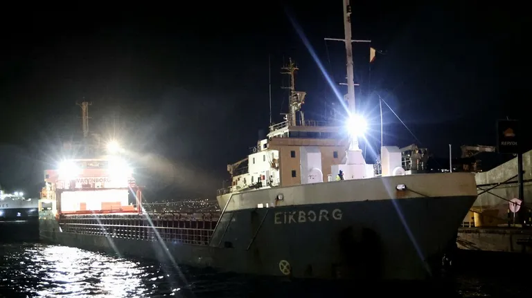 El carguero Eikborg a su llegada al muelle de Beiramar del puerto de Vigo