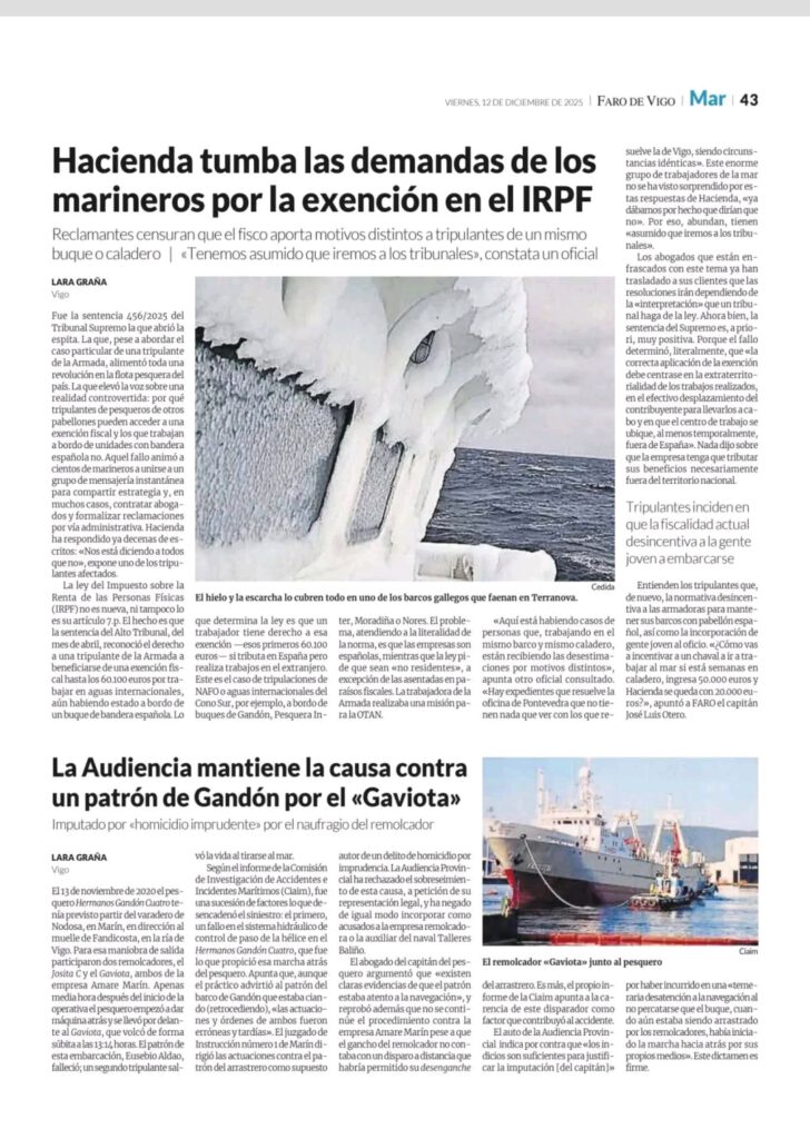Hacienda tumba las demandas de los marineros diciembre 12, 2025 / admin / Sin comentarios Uncategorized Entrada anterior Alarma en la flota pesquera de Marín ante la decisión de establecer zonas de vertidos de áridos en donde pescan numerosos barcos Deja una respuesta Cancelar la respuestaTu dirección de correo electrónico no será publicada. Los campos obligatorios están marcados con *Comentario * Nombre * Correo electrónico * Web Guarda mi nombre, correo electrónico y web en este navegador para la próxima vez que comente. Δ