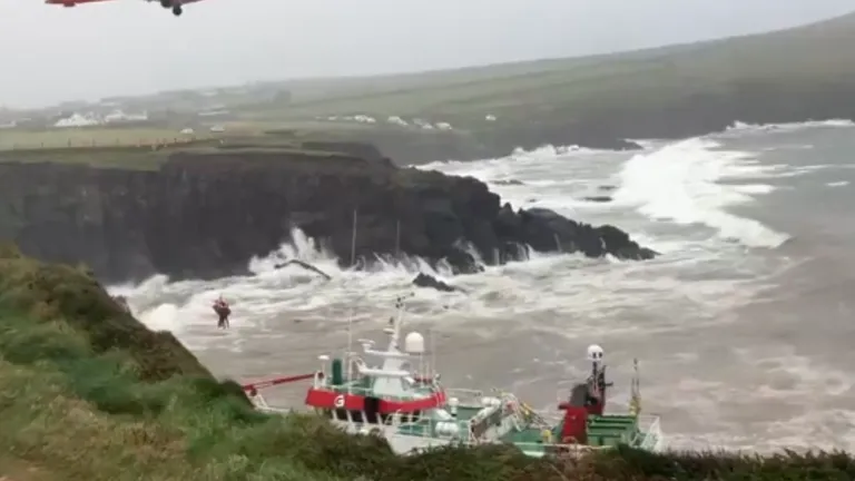 Los 14 tripulantes del Fastnet fueron rescatados por un helicóptero de la Guarda Costera de Irlanda el 14 de diciembre, cuando embarrancó en Dingle