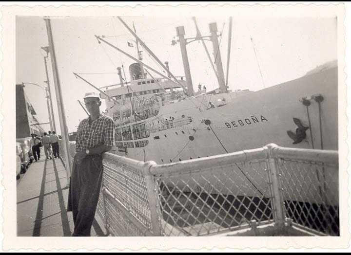 El trasatlántico Begoña en el puerto de Vigo preparándose para partir hacia Venezuela en 1954. Historias de la emigración (Album familiar de Demetrio Otero Lorenzo Arquivo da Imaxe do Porriño)