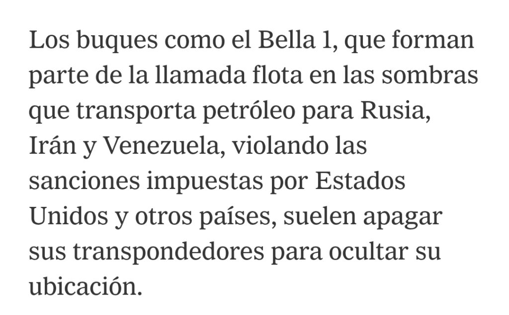 Los buques como el Bella 1 enero 3, 2026 / admin / Sin comentarios Uncategorized Entrada anterior Un robot submarino localiza el barco del naufragio de Indonesia en el que permanecen desaparecidos tres valencianos Entrada siguiente Arde Venezuela: comienzan los bombardeos por aire en Caracas y estados claves Deja una respuesta Cancelar la respuestaTu dirección de correo electrónico no será publicada. Los campos obligatorios están marcados con *Comentario * Nombre * Correo electrónico * Web Guarda mi nombre, correo electrónico y web en este navegador para la próxima vez que comente. Δ