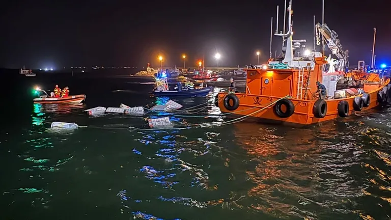 El operativo no finalizó con el rescate, pues parte de esa carga salió a flote. En concreto, los bidones de plástico cuadrados que llevaban en su interior algún tipo de combustible. El personal de la Salvamar Sargadelos contabilizó hasta once recipientes que emergieron tras el naufragio del Nuevo Santa Irene, de 14,7 metros de eslora. Fue preciso recuperarlos para evitar problemas, por lo que se reclamó el apoyo de varias embarcaciones que se encontraban en las inmediaciones del lugar del siniestro. También acudió la auxiliar del remolcador Irmáns García Nodal y el buque multipropósito que participó desde el primer momento, el Insuíña Grande. Este consiguió recuperar ocho de los bidones flotantes y remolcarlos hasta el puerto, mientras que la Salvamar Sargadelos retiró otros tres del mar. Aunque en principio se daba por recogidos todos, no se descartaba que pudiesen salir más a la superficie. En el operativo también participaron la Guardia Civil, la Policía Local y el Servicio Municipal de Emerxencias de O Grove.