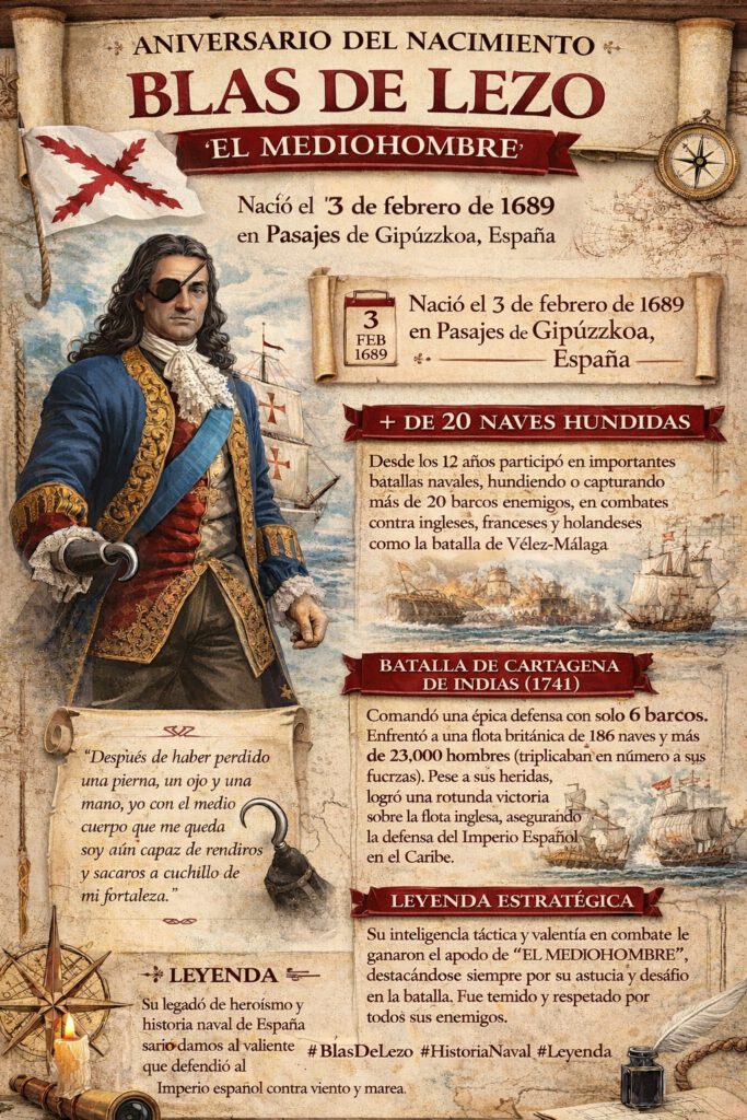 Hoy recordamos a Blas de Lezo Un tres de Febrero de 1689 nacia