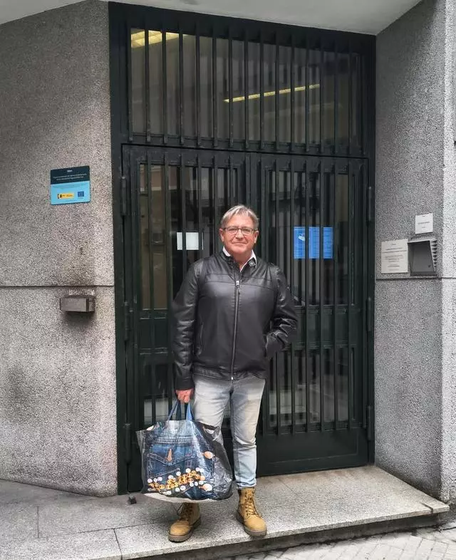 Aníbal Rodríguez, el último día de trabajo, delante de la puerta de Telefónica en A Coruña.