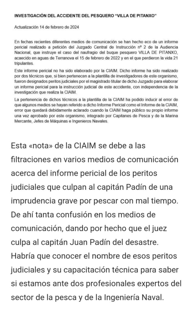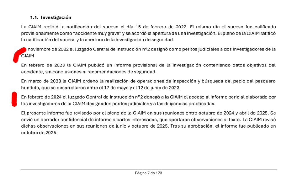 Hemos censurado el Informe Final, pero, cuidado, en su elaboración «se presume» que fueron aceptadas las observaciones de las Partes que han dado por buena la denegación de auxilio y la omisión del Socorro de los 9 barcos en las cercanías del Pitanxo.